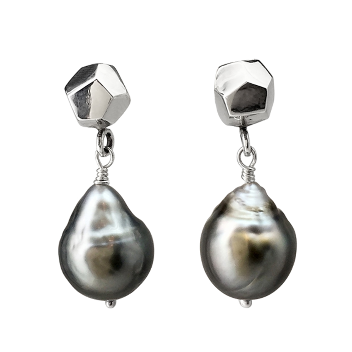 Decca earrings silver and dangly Tahitian pearl