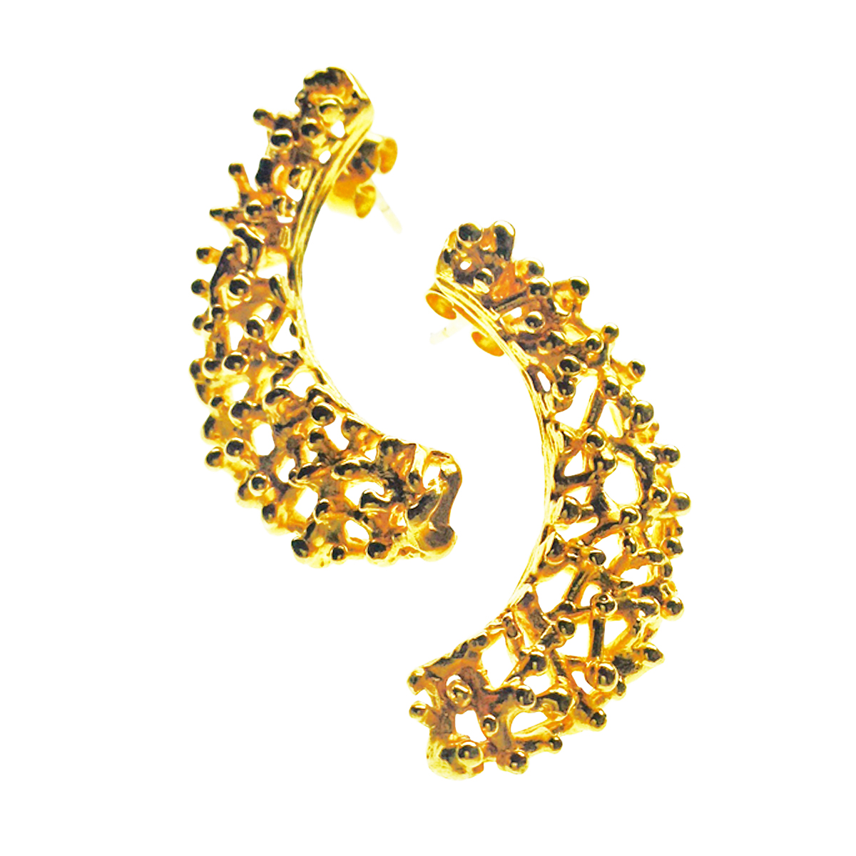 Crescent twiggy stud earrings. Solid silver with a hard wearing gold plate. 3.5cm length.